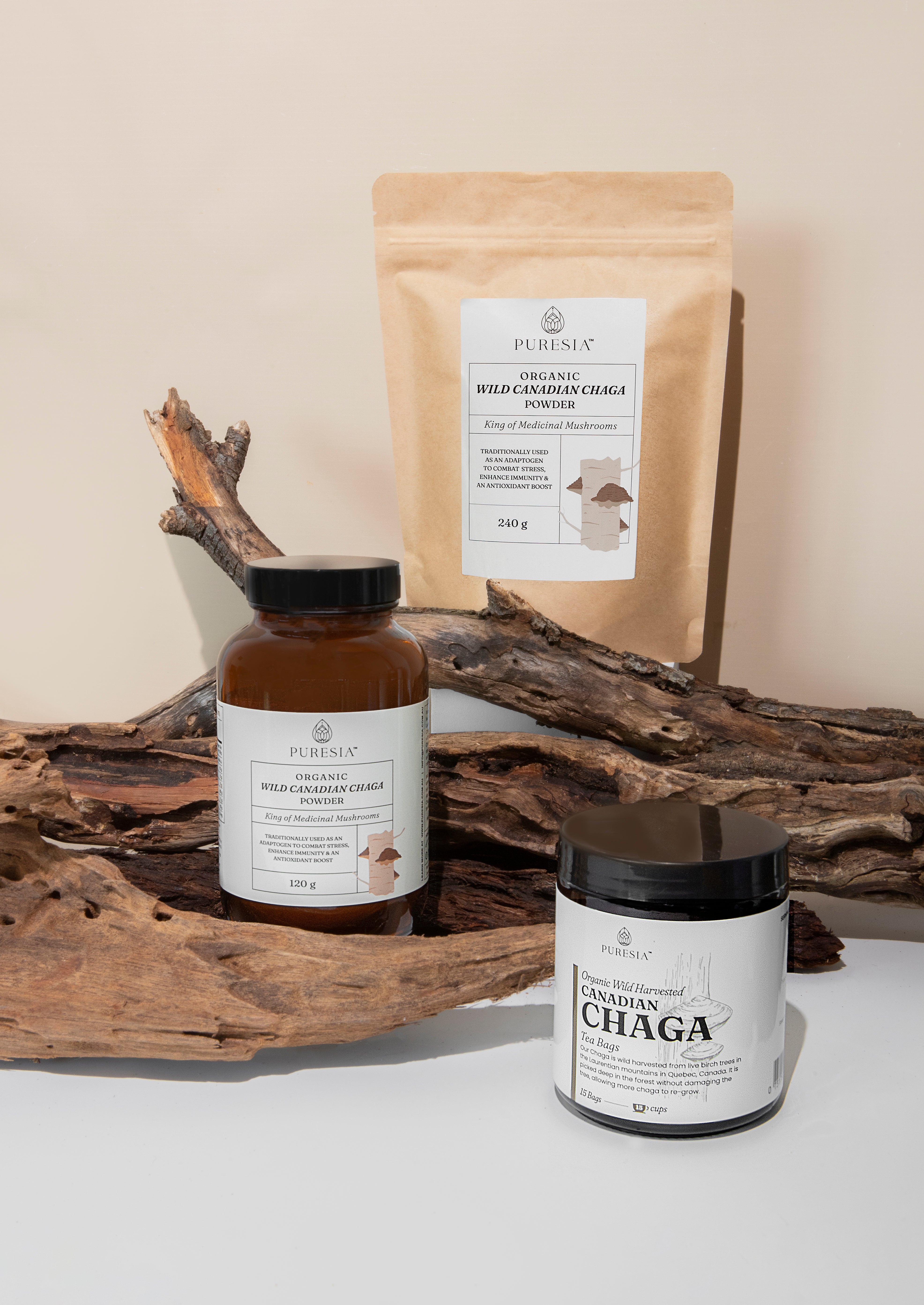 Puresia Chaga is wild harvested from live birch trees in the pristine Laurentian mountains in Quebec, Canada. It’s picked deep in the forest without damaging the tree. Our Chaga is selectively harvested allowing more Chaga to re-grow.